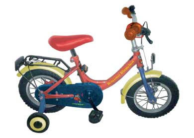 rot mit gelben Schutzblechen sowie hellblau mit dunkelblauen Schutzblechen